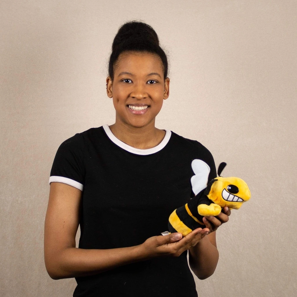 This unique yellowjacket is great for any occasion when you need a yellowjacket. It wears a removable “GO TEAM” jersey.